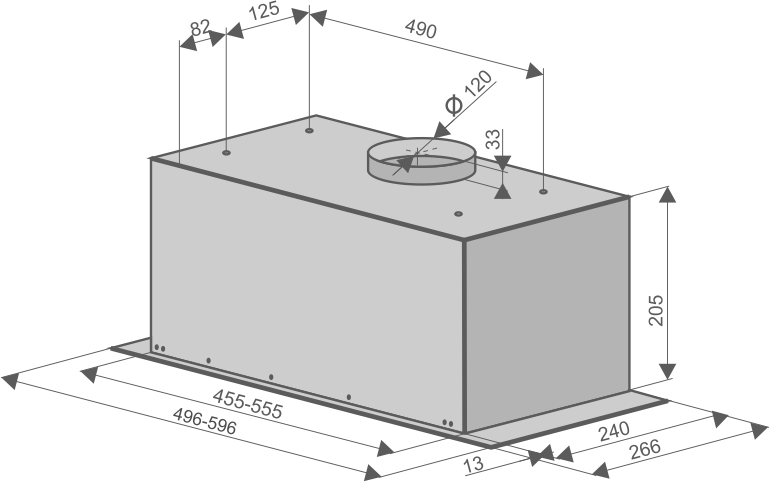 вытяжка встраиваемая в подвесной шкаф, 50 см, 650 м3/ч, черный