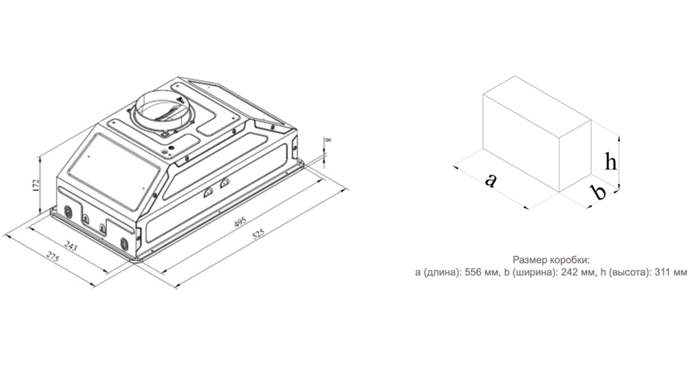 вытяжка встраиваемая в подвесной шкаф, 52 см, 800 м3/ч, белое стекло