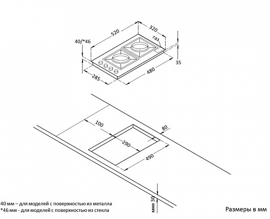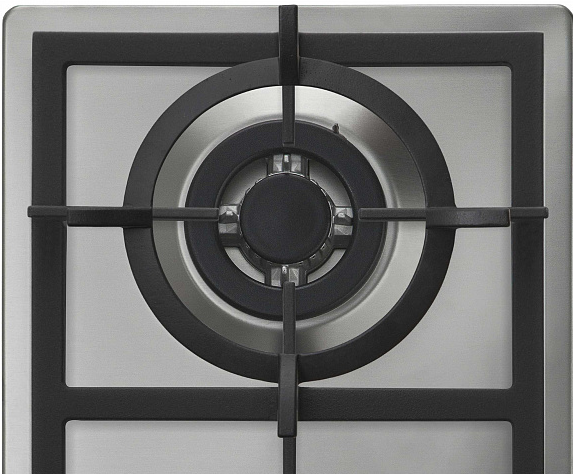 поверхность газовая, 30 см, газ на металле, 2 конфорки, решетки чугунные, нержавеющая сталь