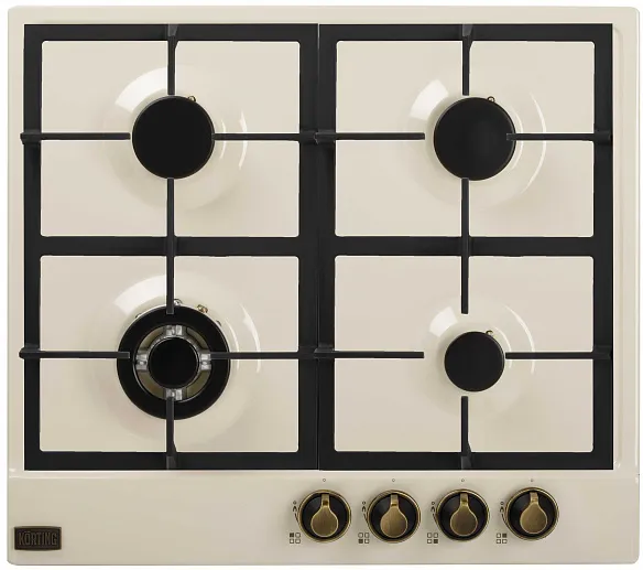 поверхность газовая, 60 см, газ на эмали, 4 конфорки, решетки чугунные, слоновая кость, цвет ручек - бронза