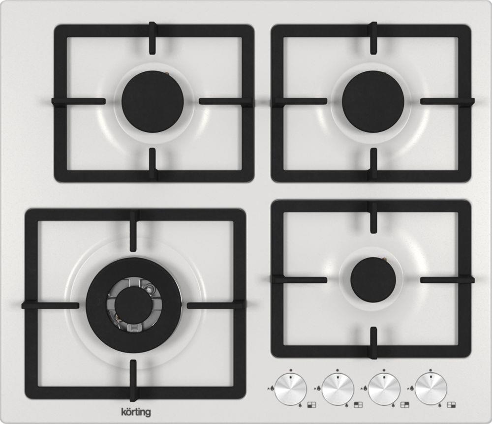 поверхность газовая, 60 см, газ на эмали, 4 конфорки, решетки чугунные, белый