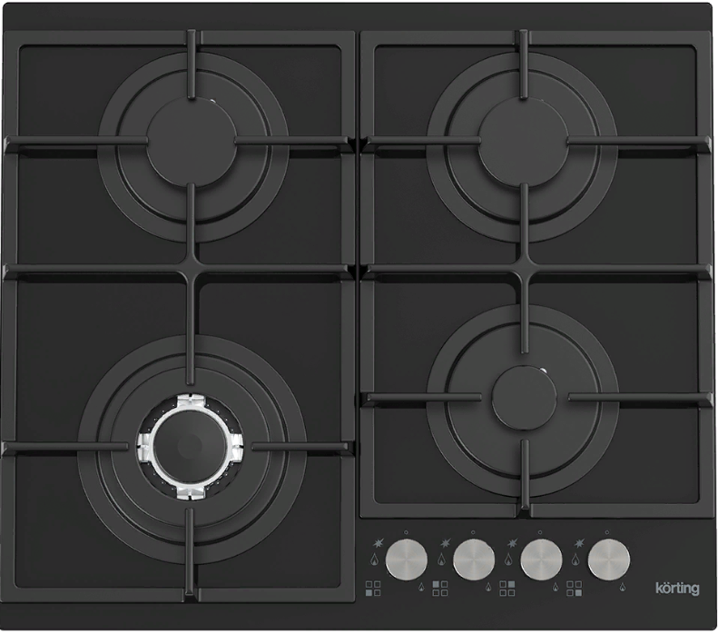поверхность газовая, 60 см, газ на стекле, 4 конфорки, решетки чугунные, черный