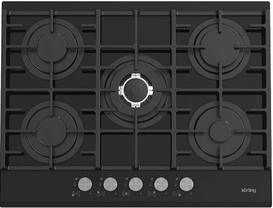 поверхность газовая, 70 см, газ на стекле, 5 конфорок, решетки чугунные, черный