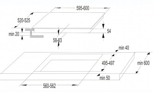 Характер огранки фаски на внешней стороне варочной панели. Металлические рамки предотвращают забивание монтажных швов крошками и пылью.