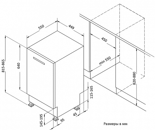 машина посудомоечная встраиваемая, 45 см, 10 комплектов