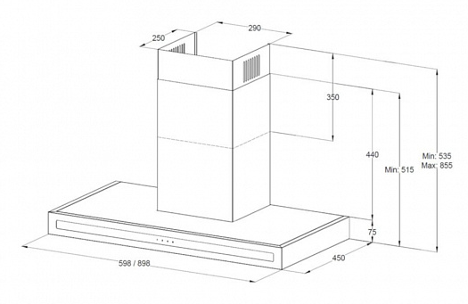 вытяжка пристенная, 60 см, 850 м3/ч, черный + черное стекло