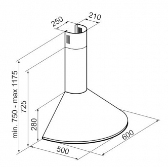 вытяжка пристенная, 60 см, 950 м3/ч, матовый черный + бронза