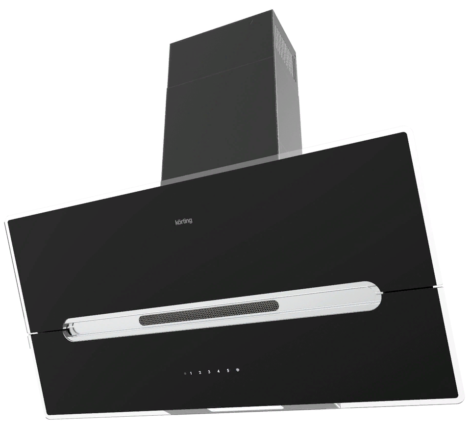 вытяжка наклонная, 90 см, 950 м3/ч, черное стекло + нержавеющая сталь