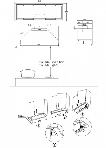 В зависимости от расположения существует несколько типов установки кухонных вытяжек: встраиваемые, стандартные, пристенные, островные и др.