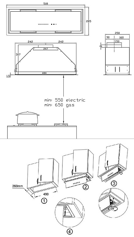 В зависимости от расположения существует несколько типов установки кухонных вытяжек: встраиваемые, стандартные, пристенные, островные и др.