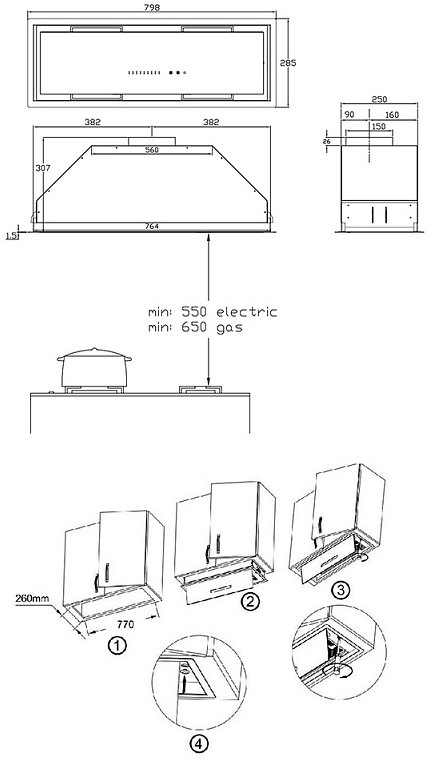 В зависимости от расположения существует несколько типов установки кухонных вытяжек: встраиваемые, стандартные, пристенные, островные и др.