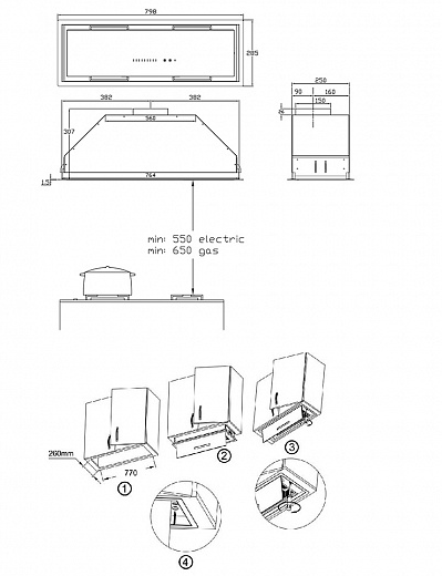 В зависимости от расположения существует несколько типов установки кухонных вытяжек: встраиваемые, стандартные, пристенные, островные и др.