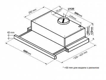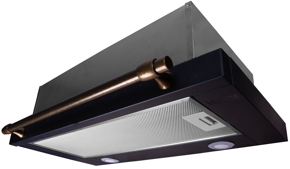 вытяжка встраиваемая телескопическая, 60 см, 650 м3/ч, цвет - черный, рейлинг в цвете бронза