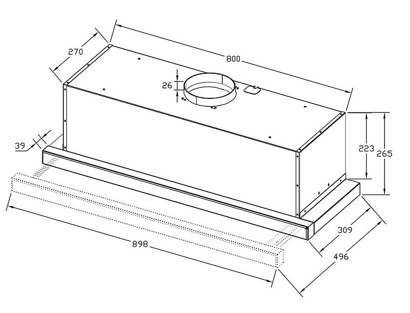 вытяжка встраиваемая телескопическая, 90 см, 800 м3/ч, черное стекло
