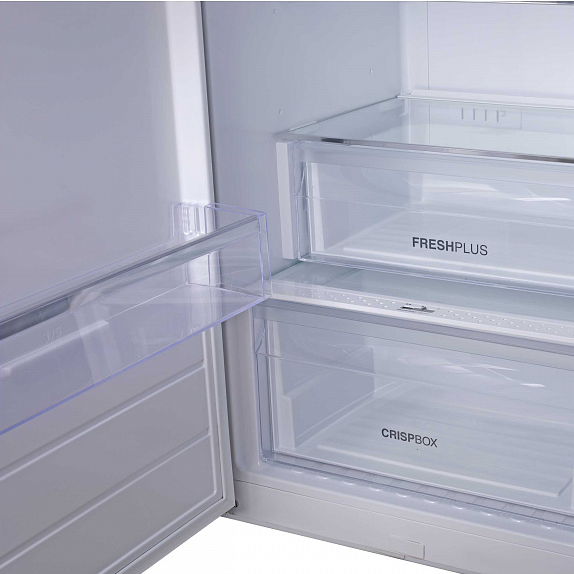 В зоне свежести температура держится на уровне 0°С, так продукты дольше остаются свежими. Подходит для свежего мяса, рыбы, фруктов, овощей.
