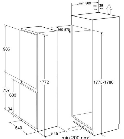 Korting KSI 17860 CFL Двухкамерный холодильник встраиваемый