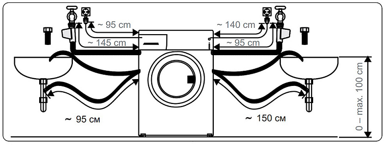 Отверстие для загрузки белья может располагаться спереди (фронтальная загрузка) или сверху (вертикальная загрузка).