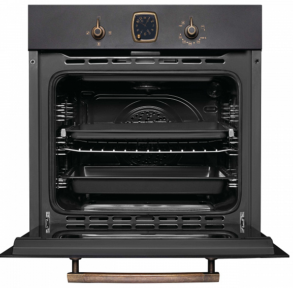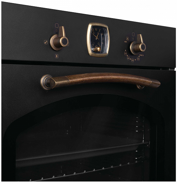 шкаф духовой газовый, 60 см, черный, цвет ручек - бронза