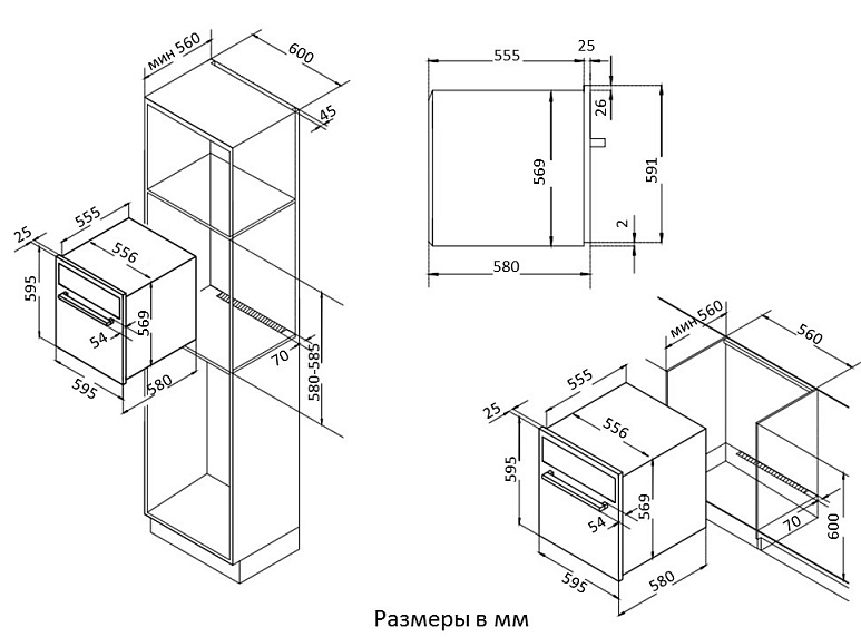 Ширина корпуса электроприбора. Особенно важно точно знать точную допустимую ширину для встраиваемой техники.