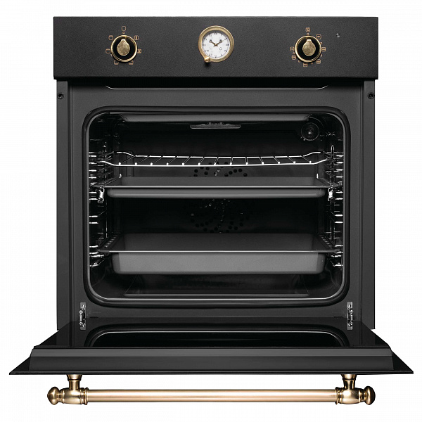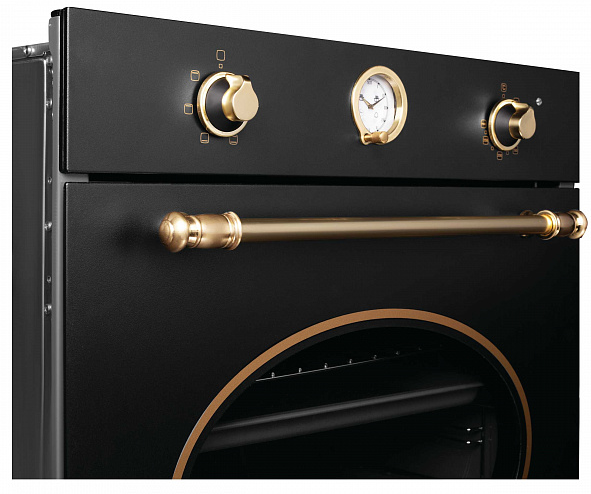 шкаф духовой электрический, 60 см, черный, фурнитура - золото
