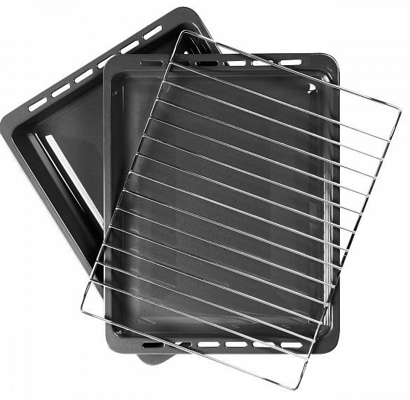 Выдвижные металлические полозья, которые легко выезжают за пределы камеры духовки вместе с противнем, не давая ему упасть.