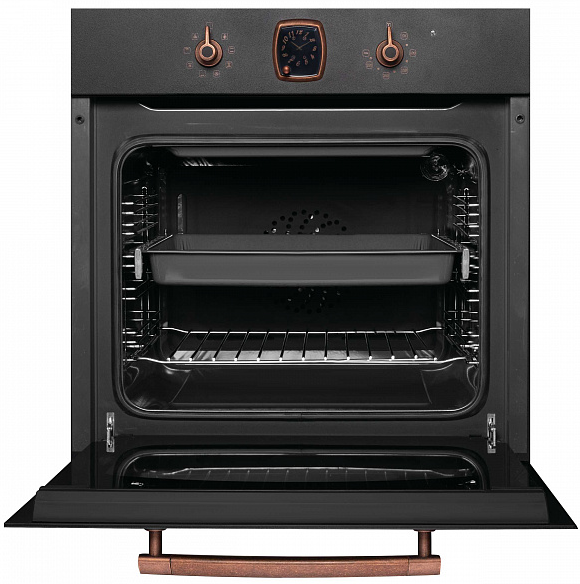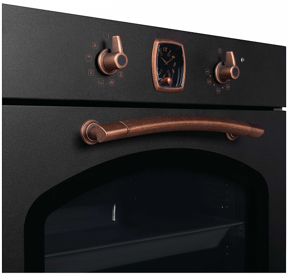 шкаф духовой электрический, 60 см, матовый черный, фурнитура - медь