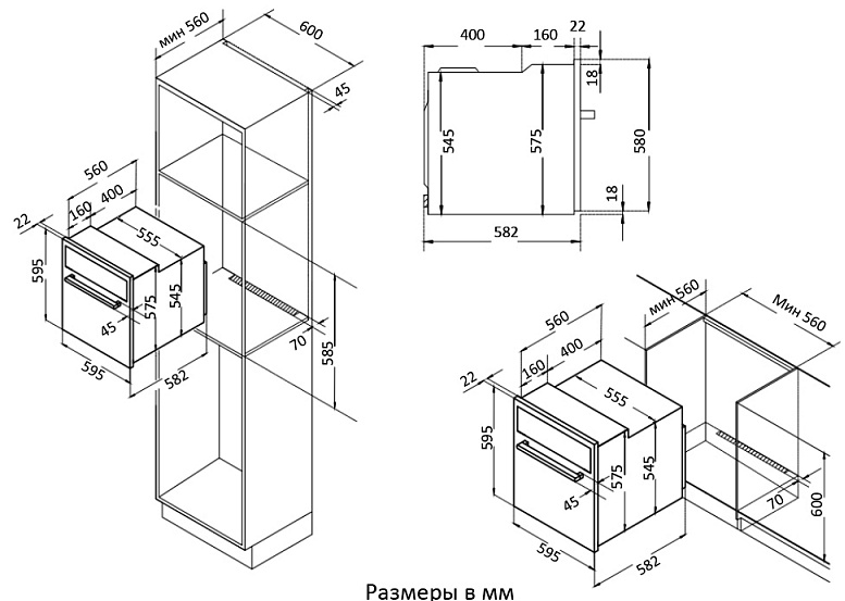 Ширина корпуса электроприбора. Особенно важно точно знать точную допустимую ширину для встраиваемой техники.