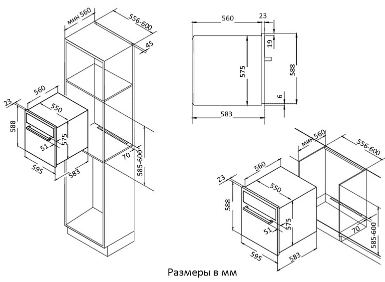 Ширина корпуса электроприбора. Особенно важно точно знать точную допустимую ширину для встраиваемой техники.