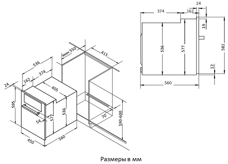 Ширина корпуса электроприбора. Особенно важно точно знать точную допустимую ширину для встраиваемой техники.