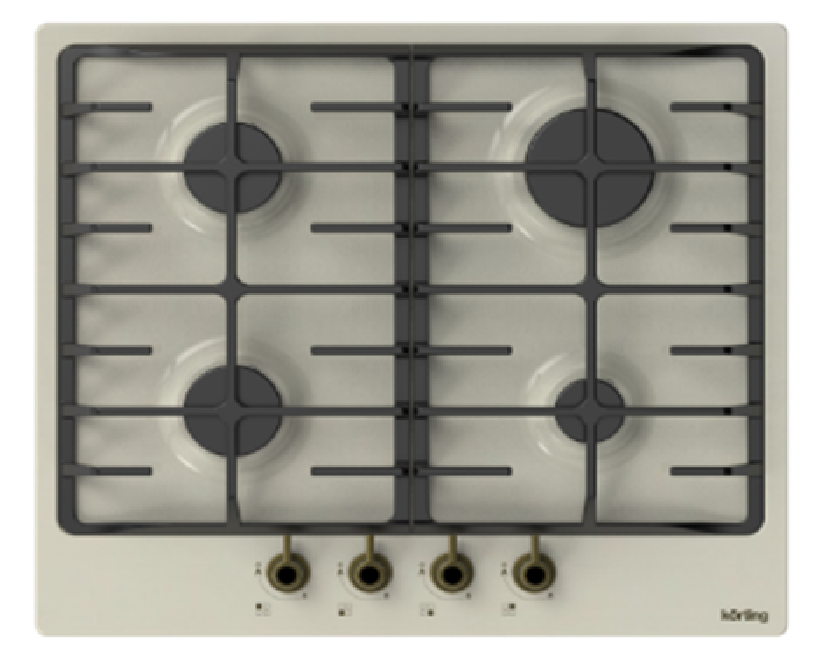 поверхность газовая, 60 см, эмаль, 4 конфорки, решетки чугунные, слоновая кость