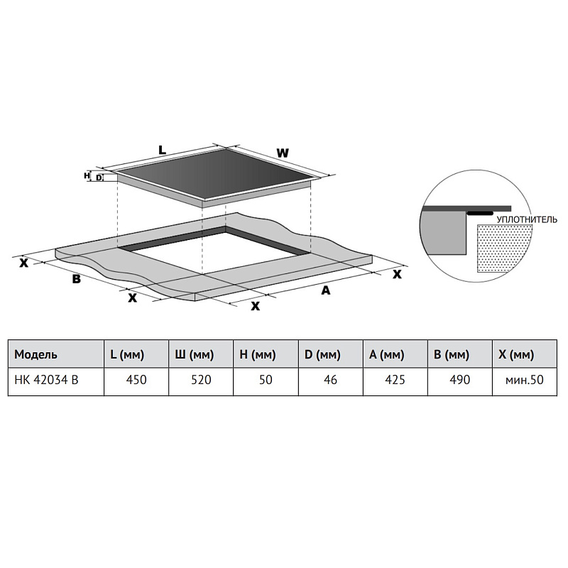Характер огранки фаски на внешней стороне варочной панели. Металлические рамки предотвращают забивание монтажных швов крошками и пылью.