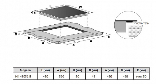 Характер огранки фаски на внешней стороне варочной панели. Металлические рамки предотвращают забивание монтажных швов крошками и пылью.