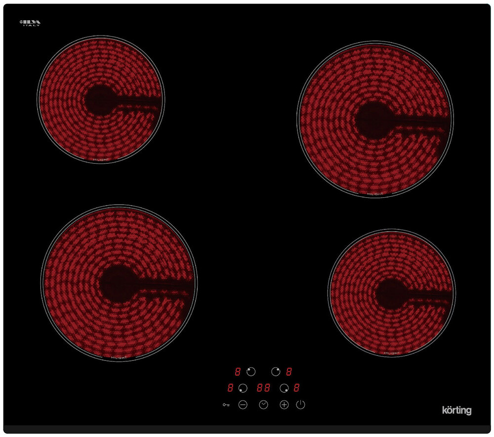 Расположение панели управления варочной поверхностью относительно конфорок. Если панель расположена сбоку, она будет справа.