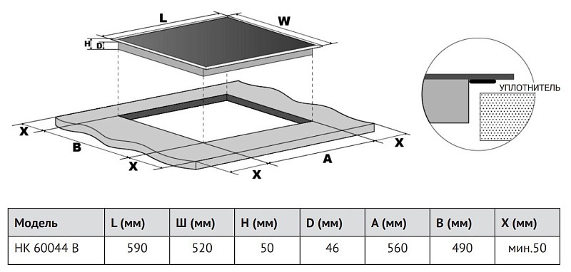 поверхность варочная стеклокерамическая, 60 см, черный, передний скошенный край