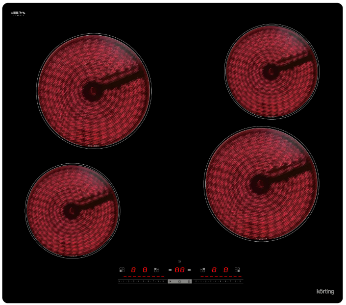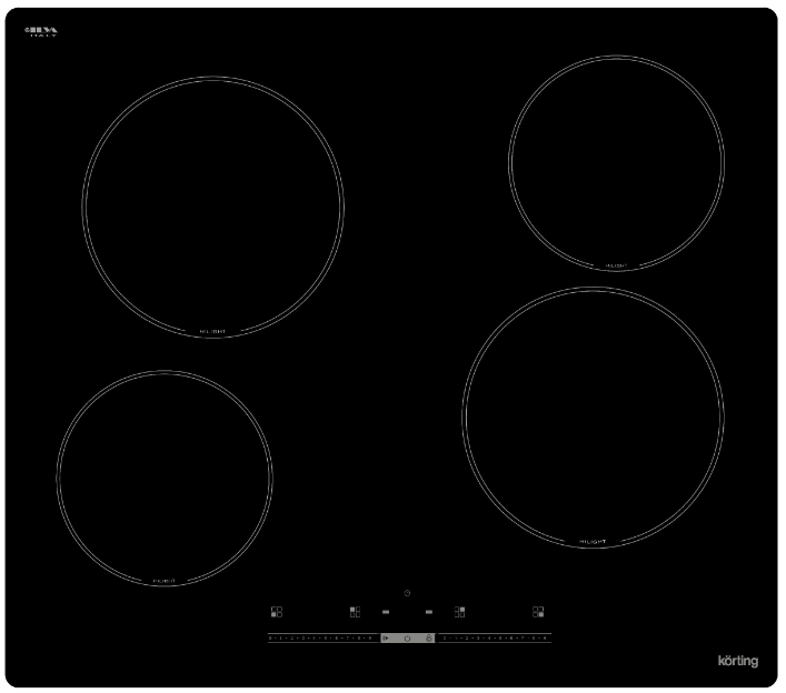 Расположение панели управления варочной поверхностью относительно конфорок. Если панель расположена сбоку, она будет справа.