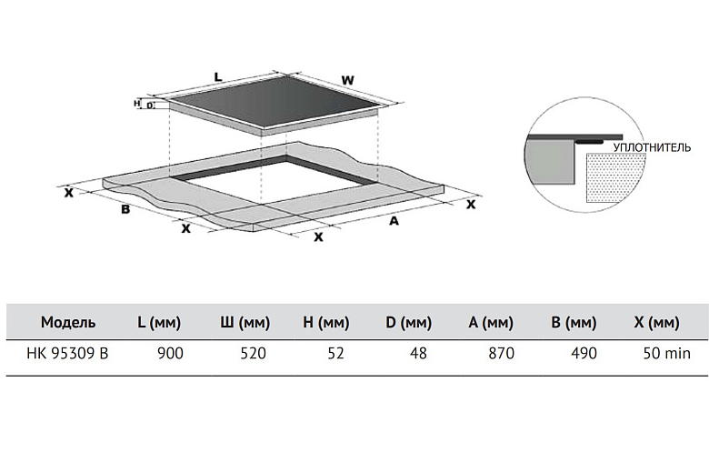поверхность варочная стеклокерамическая, 90 см, черный, без рамки