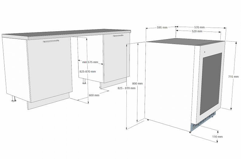 винный шкаф встраиваемый, 129 л, 59,5х57х82 см, черное стекло
