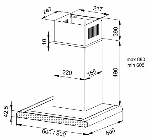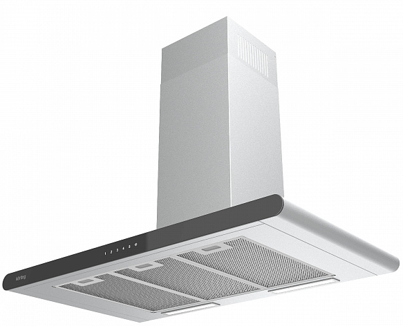 вытяжка пристенная, 90 см, 950 м3/ч, черное стекло + нержавеющая сталь