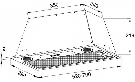 вытяжка встраиваемая в подвесной шкаф, 70 см, 800 м3/ч, черный