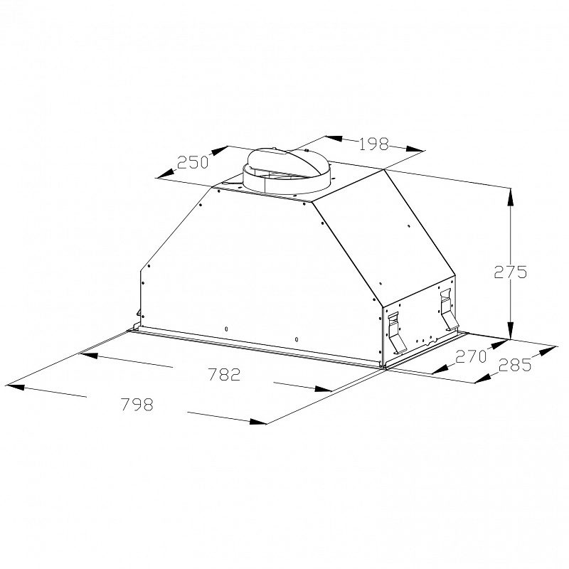 вытяжка встраиваемая в подвесной шкаф, 80 см, 850 м3/ч, черное стекло