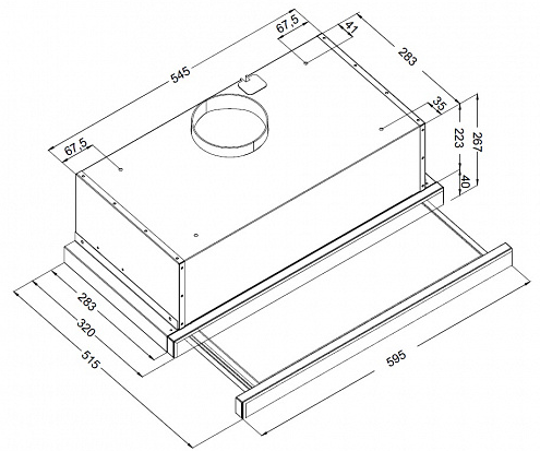 вытяжка встраиваемая телескопическая, 60 см, 900 м3/ч, черный + черное стекло