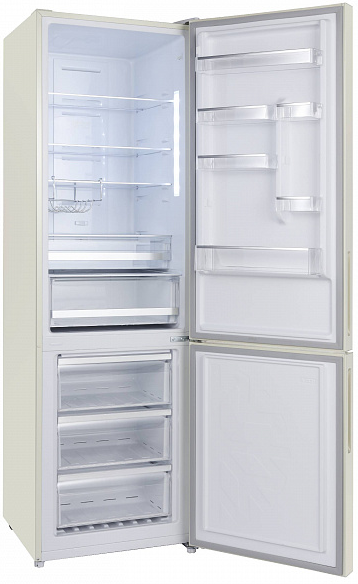 холодильник-морозильник отдельностоящий, 351 л, класс энергопотребления А+, No Frost, 59,5х63,5х200 см, бежевое стекло