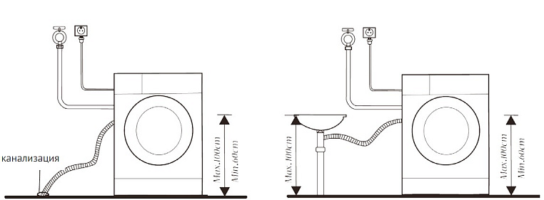 Отверстие для загрузки белья может располагаться спереди (фронтальная загрузка) или сверху (вертикальная загрузка).