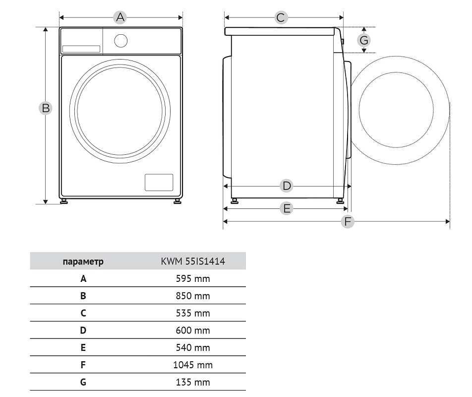 машина стиральная с фронтальной загрузкой отдельностоящая, 1400 об/мин, 10 кг, 59,5х53,5x85 см, белый