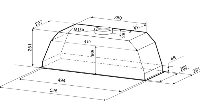 вытяжка встраиваемая в подвесной шкаф, 53 см, 1000 м3/ч, белый