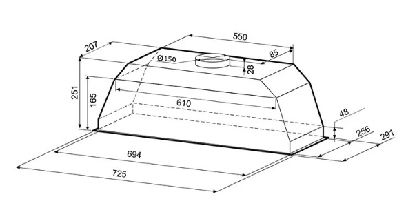 вытяжка встраиваемая в подвесной шкаф, 72 см, 550 м3/ч, белый