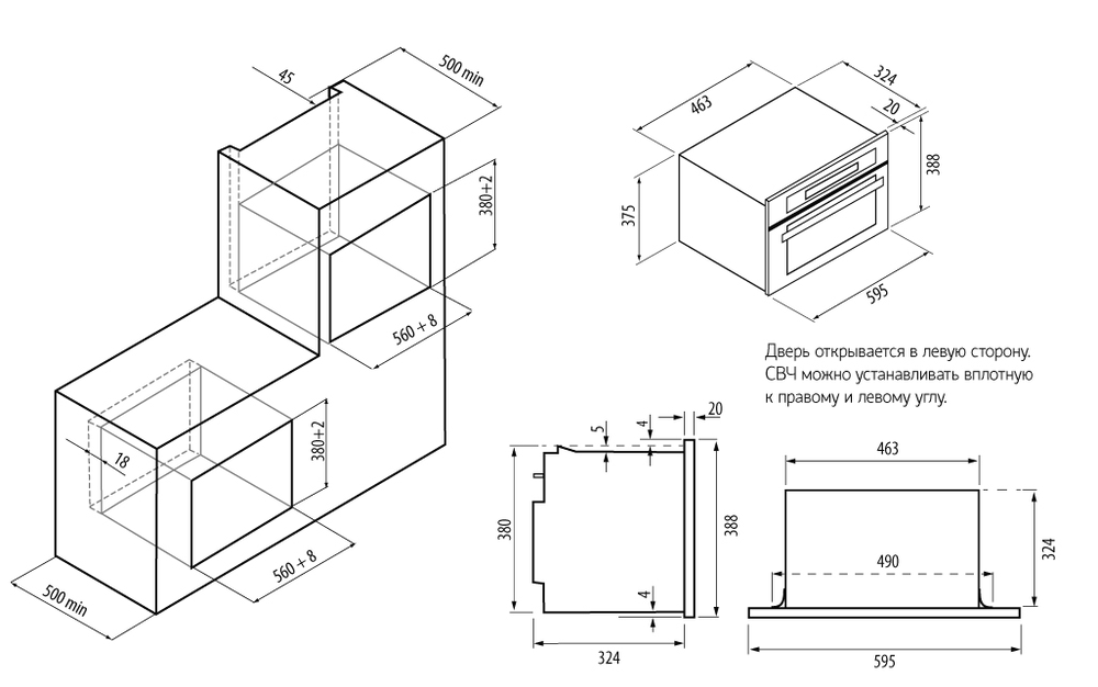 Дверца может открываться по-разному в зависимости от конструкции. Ориентируйтесь на личные предпочтения и будущее расположение прибора.
