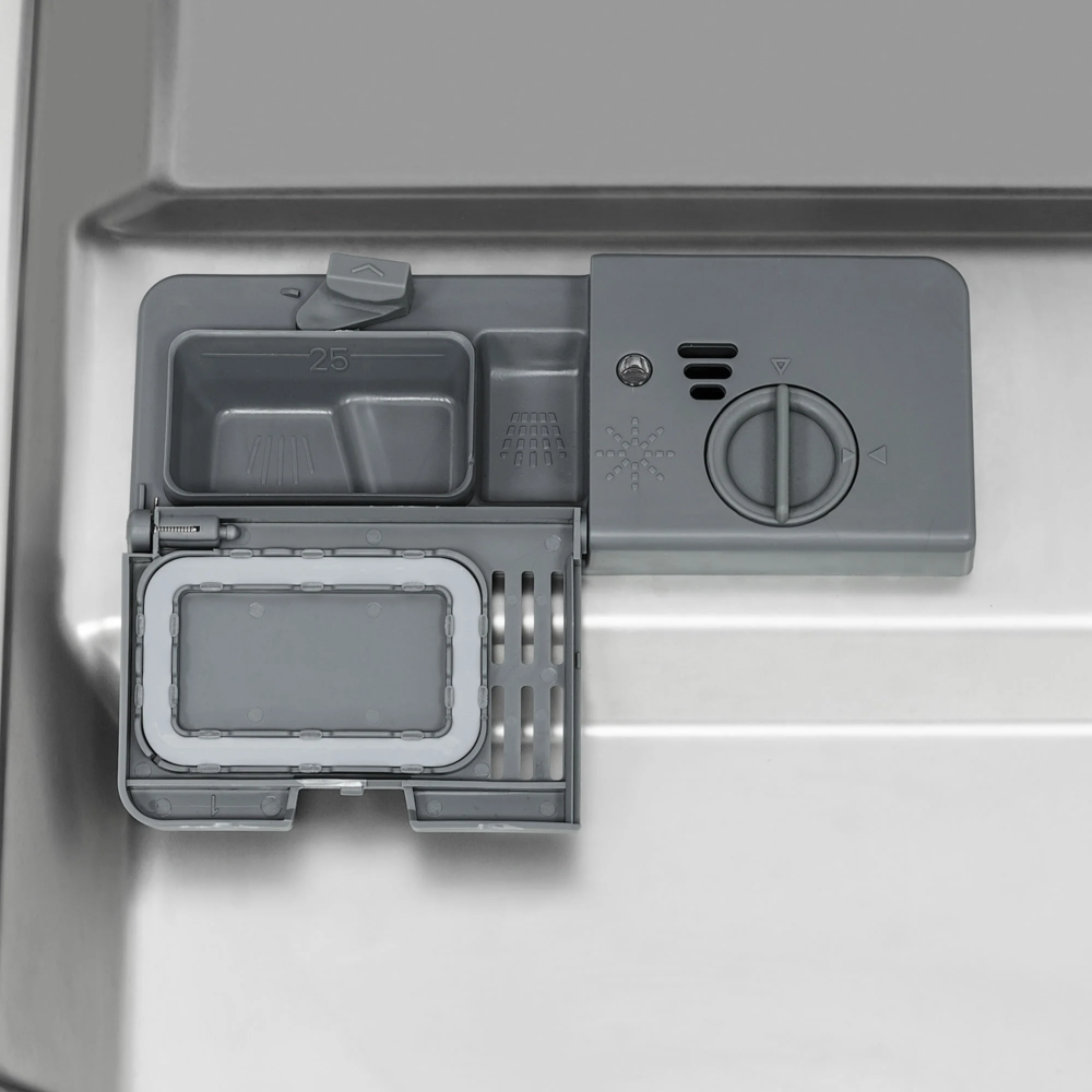 Возможно использование специальных таблеток 3в1, включающих моющее средство, ополаскиватель и соль для смягчения воды. Это быстро и удобно.