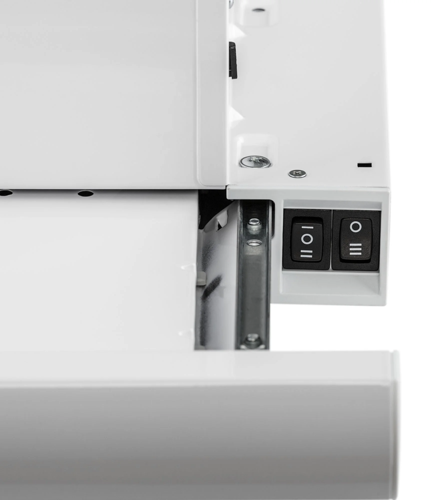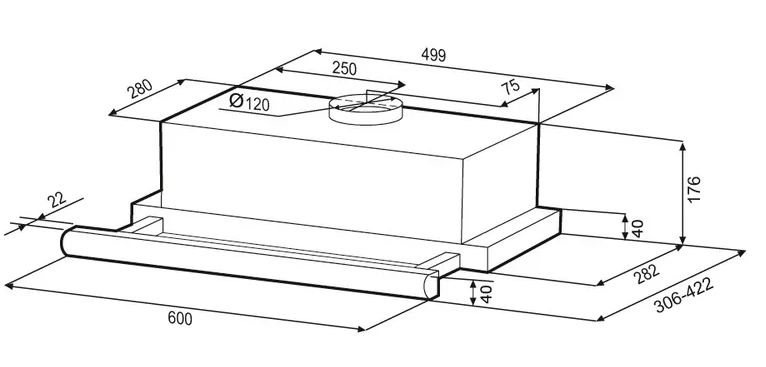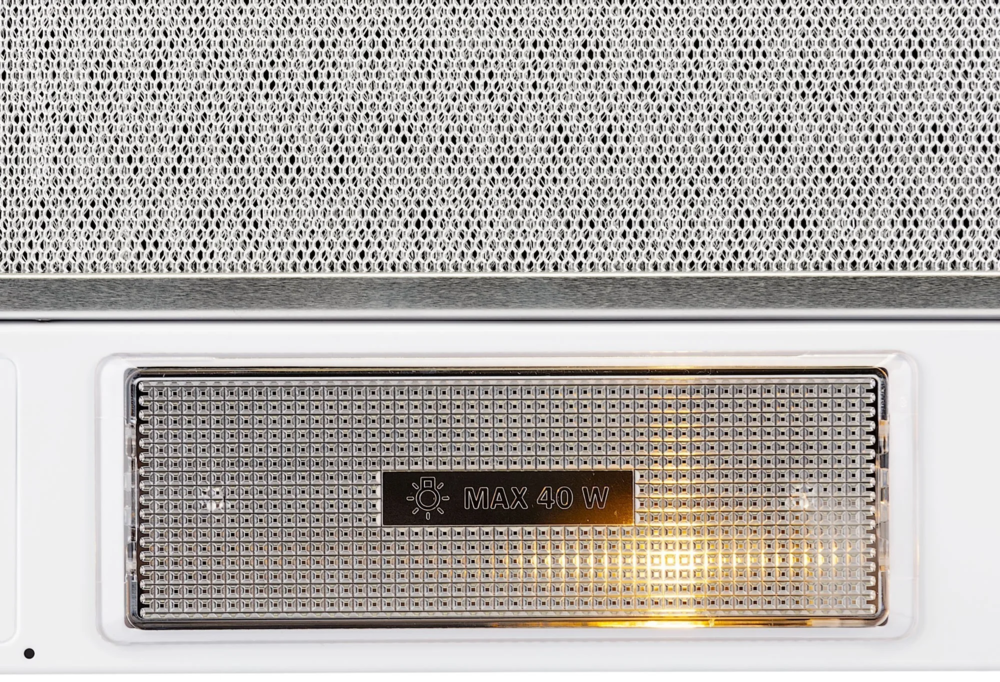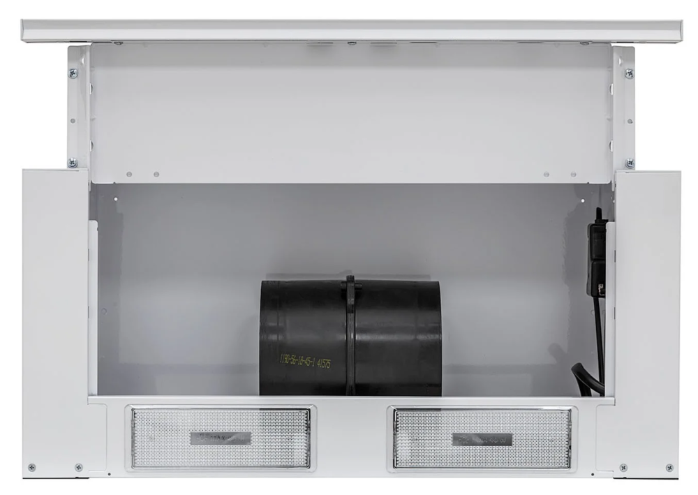 Устройство имеет три скорости работы, что позволяет выбрать оптимальный режим для различных условий приготовления пищи. Управление осуществляется с помощью кнопочного элемента, что делает его удобным и простым в использовании. Вытяжка имеет выдвижной козырек, который обеспечивает удобное и быстрое встраивание в шкаф.
