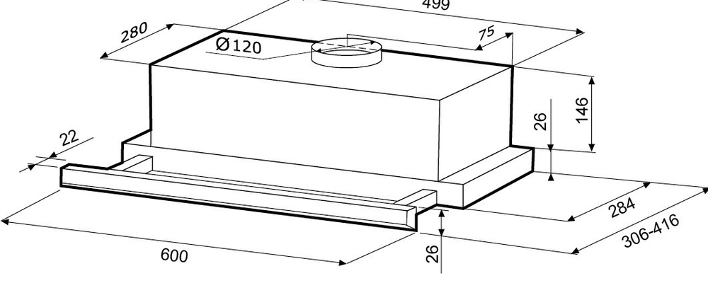 вытяжка встраиваемая телескопическая, 60 см, 820 м3/ч, белый